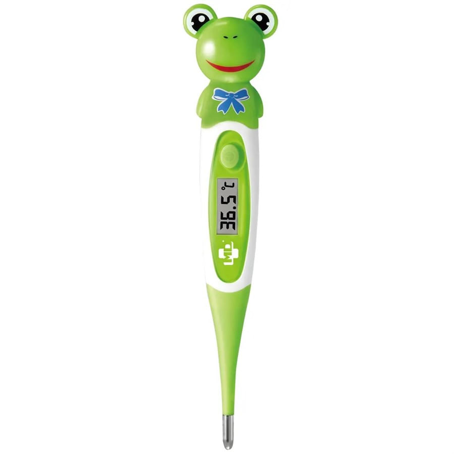 O termômetro da MD mede a temperatura corpórea em 10 segundos e possui alerta sonoro ao término da medição. A haste do aparelho é flexível.